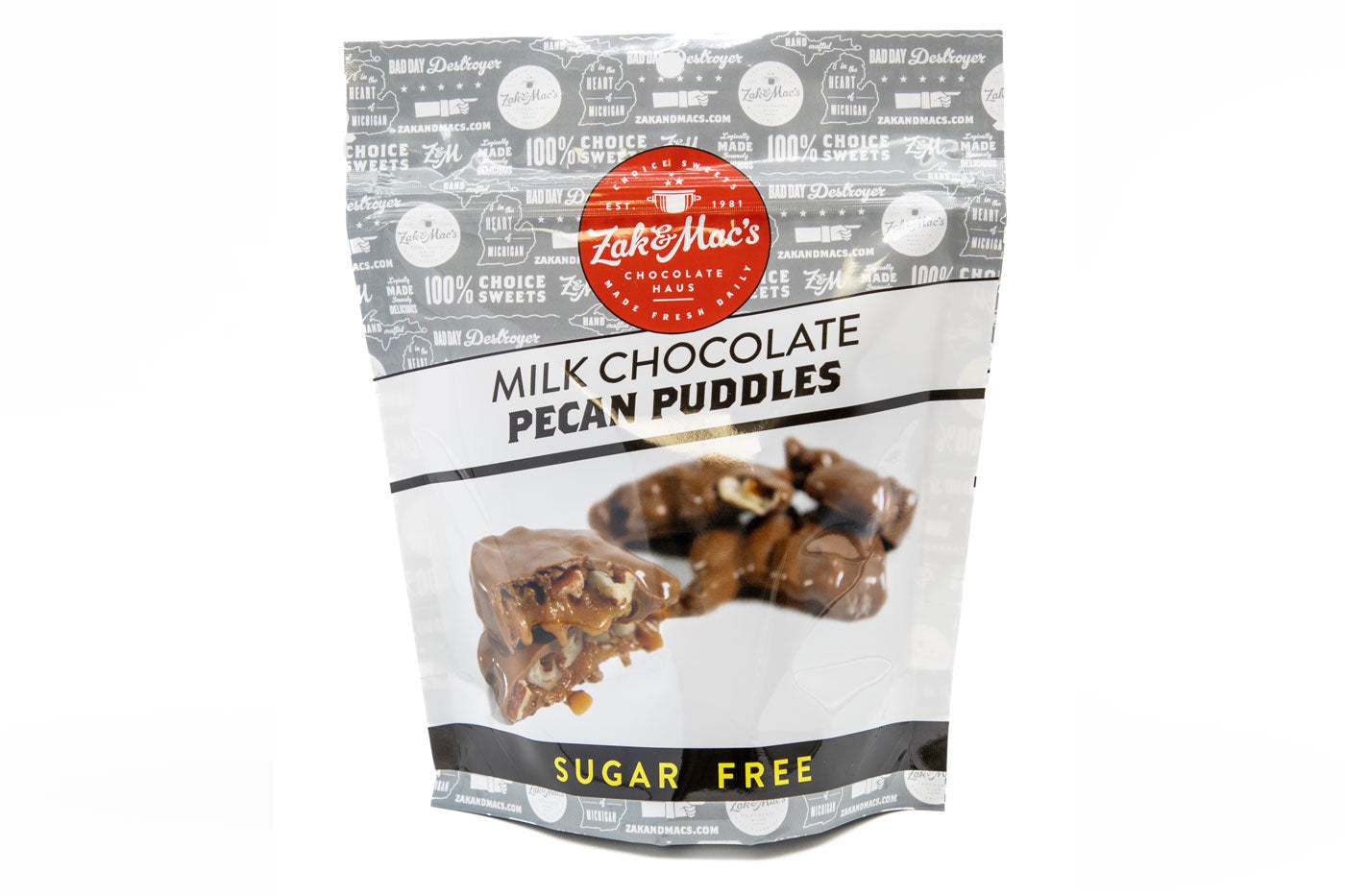 Sugar free Caramel mixed with Georgia Pecans. Enrobed in a thick shell of Sugar Free Milk Chocolate.